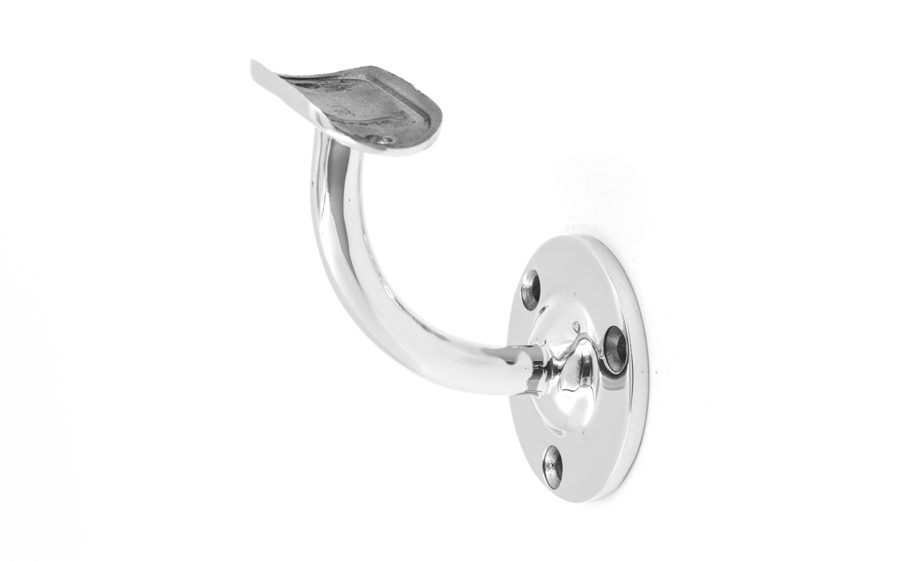 Поручень крепится к ложементу пристенка на саморезы, поэтому фитинг универсально подходит как для традиционных сварных ограждений, так и под самосбор. Благодаря оптимально подобранному выносу, пристенный поручень достаточно удален от поверхности стены, чтобы не задевать скользящей вдоль трубы поручня рукой идущего по лестнице человека. Но при этом поручень располагается близко к стене, дабы не сужать свободное пространство полезной ширины лестничного марша.
