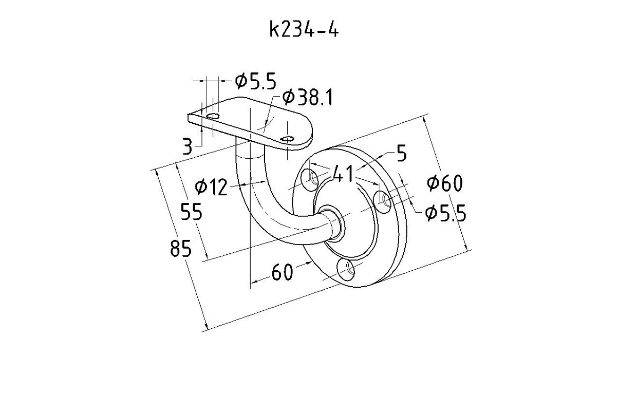 под Ø38.1, вынос 70х45, Ø60х3 мм, литой, 25х45х2 мм