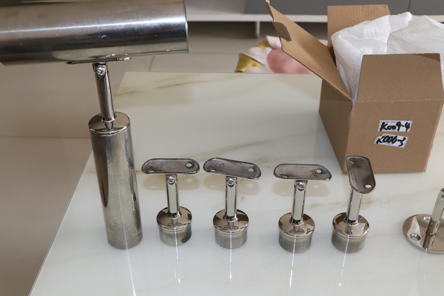 Наконечник палец с регулируемым ложементом под поручень диаметром Ø50.8 мм, на стойку диаметром Ø38.1х1.5 мм. Деталь литая, полированная, с повышенной коррозионной стойкости. Марка стали - AISI 316