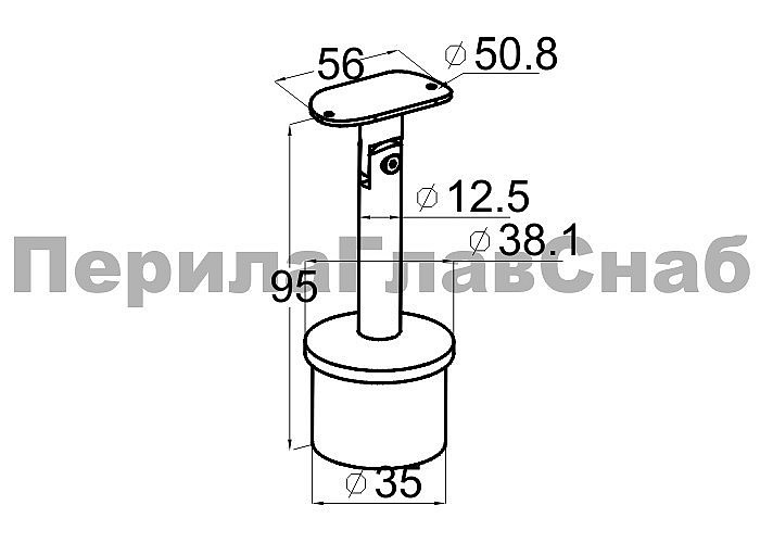 Вставляется в стойку диаметром Ø38.1 мм под поручень Ø50.8 мм.