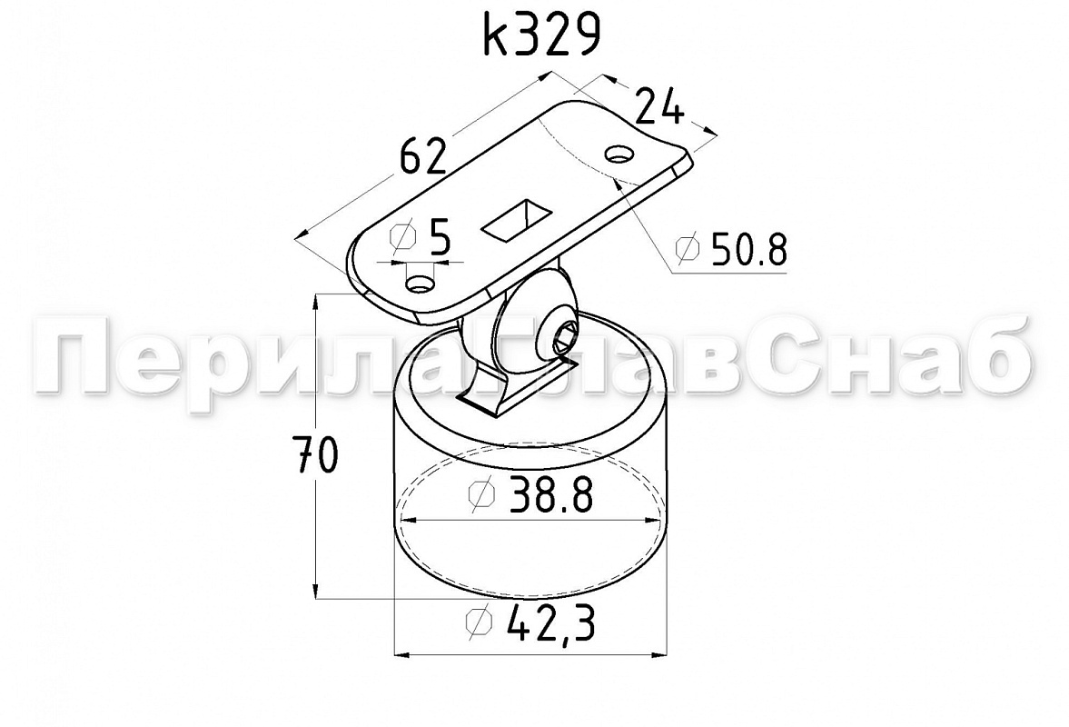 Предназначен для соединения стойки Ø38.1 мм и поручня Ø50.8 мм. Деталь с регулируемым ложементом, что позволяет монтировать его на горизонтальных поверхностях и на лестничных маршах. Аналоги k601 и k204.