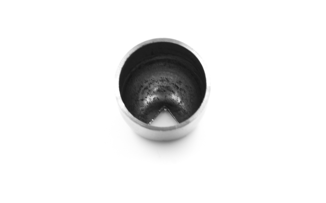 Наконечник штампованный (СПС) косой 30° на трубу Ø16 мм, для поручня Ø38.1- 50.8 мм. Деталь полированная, нержавеющая. Марка стали - AISI 304