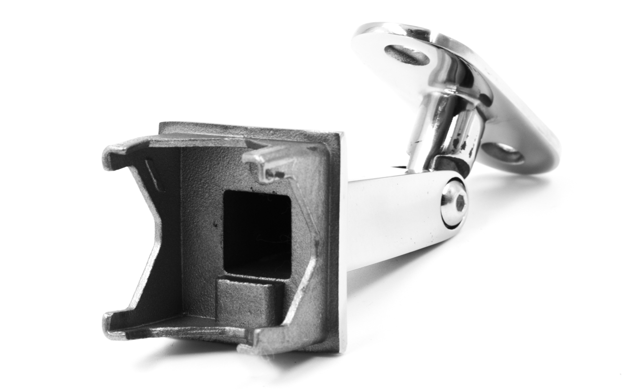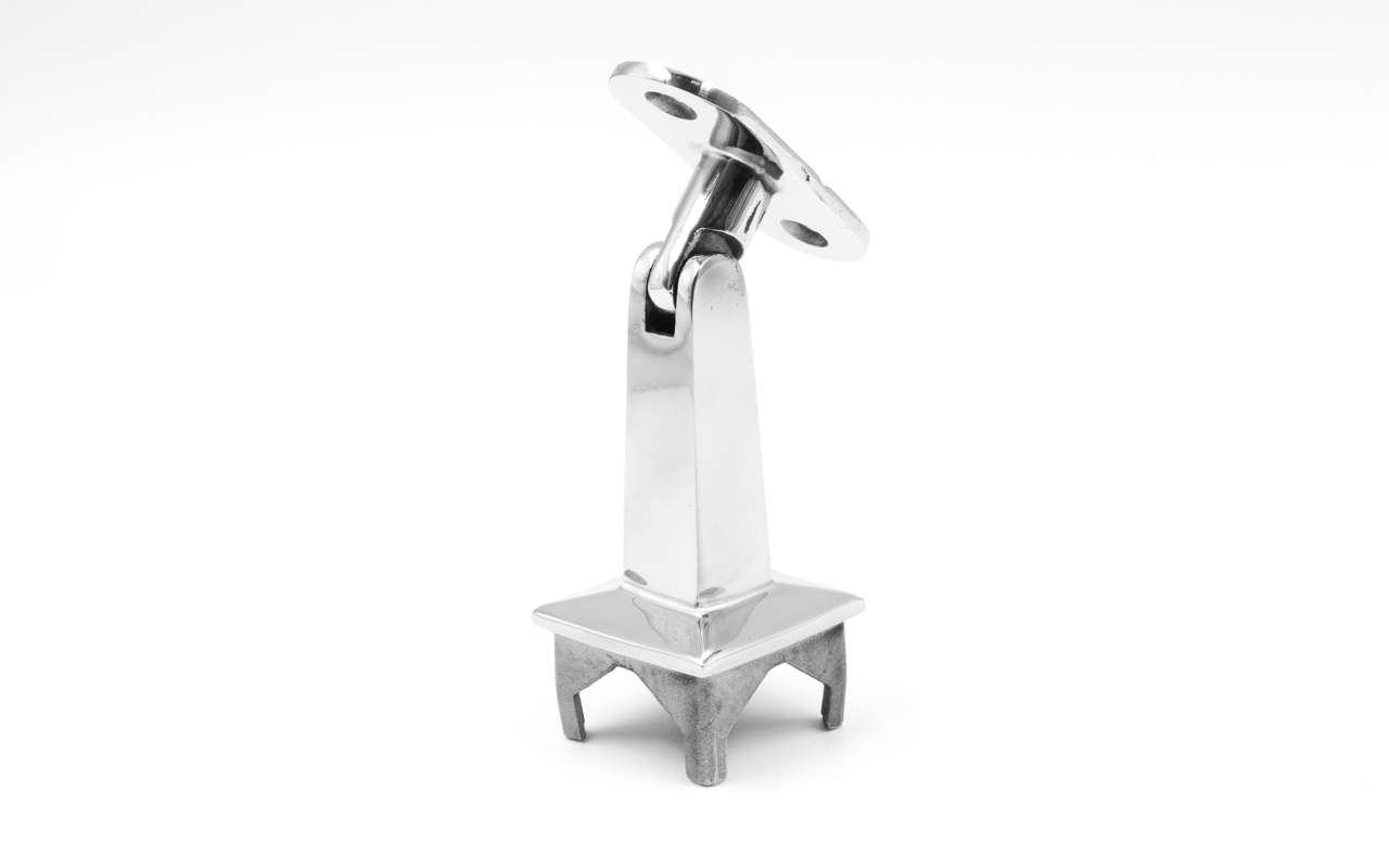 Наконечник на стойку из профильной трубы 40х40 мм, с регулируемым ложементом под плоскость, литой, полированный, нержавеющий AISI 304 k222-3