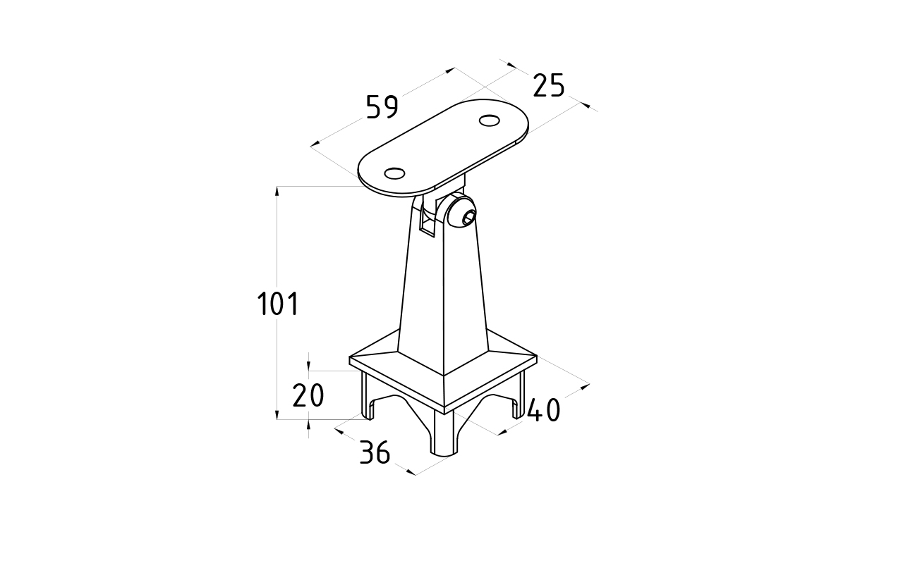 Литой наконечник на стойку 40х40 мм, штырь квадратный, высота 95 мм, с регулируемым ложе под плоскость.
