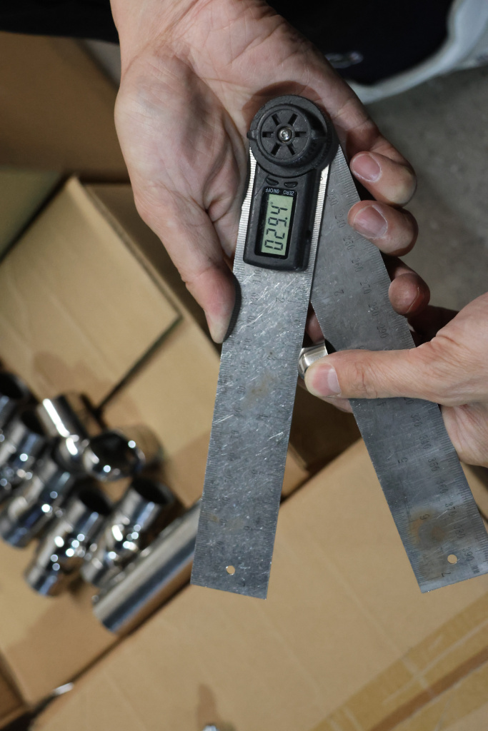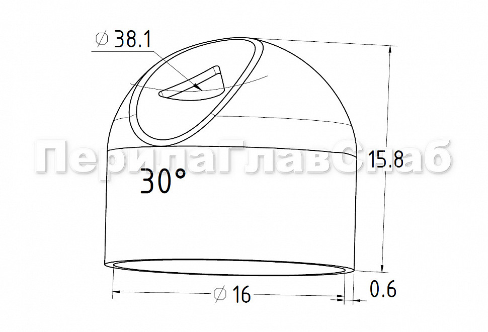 Наконечник штампованный (СПС) косой 30° на трубу Ø16 мм, для поручня Ø38.1 мм, полированный, нержавеющий, 400Grit, AISI 304, k212-2