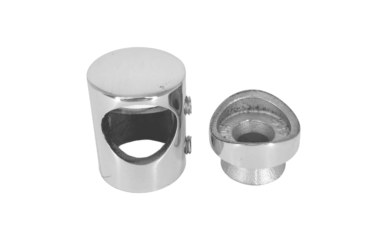 Наконечник палец с алюминиевой системой фиксации на стойке Ø38.1х1.5 мм, регулируемым ложементом под поручень Ø50.8 мм, полированный, литой, нержавеющий (AISI 304) k204 купить в Воронеже