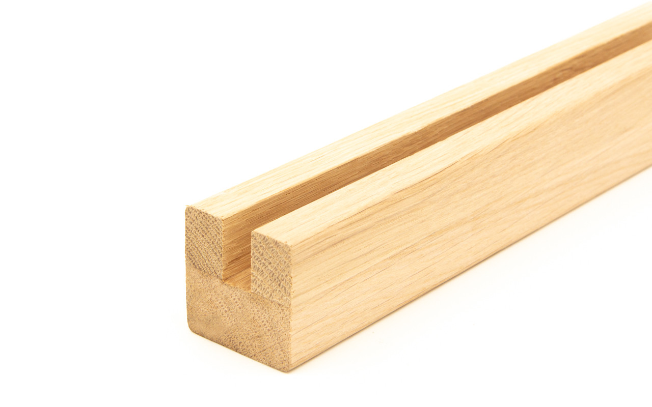 Поручень из древесины дуба 40х40мм с пазом под стекло