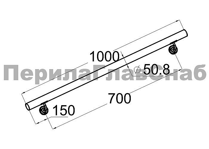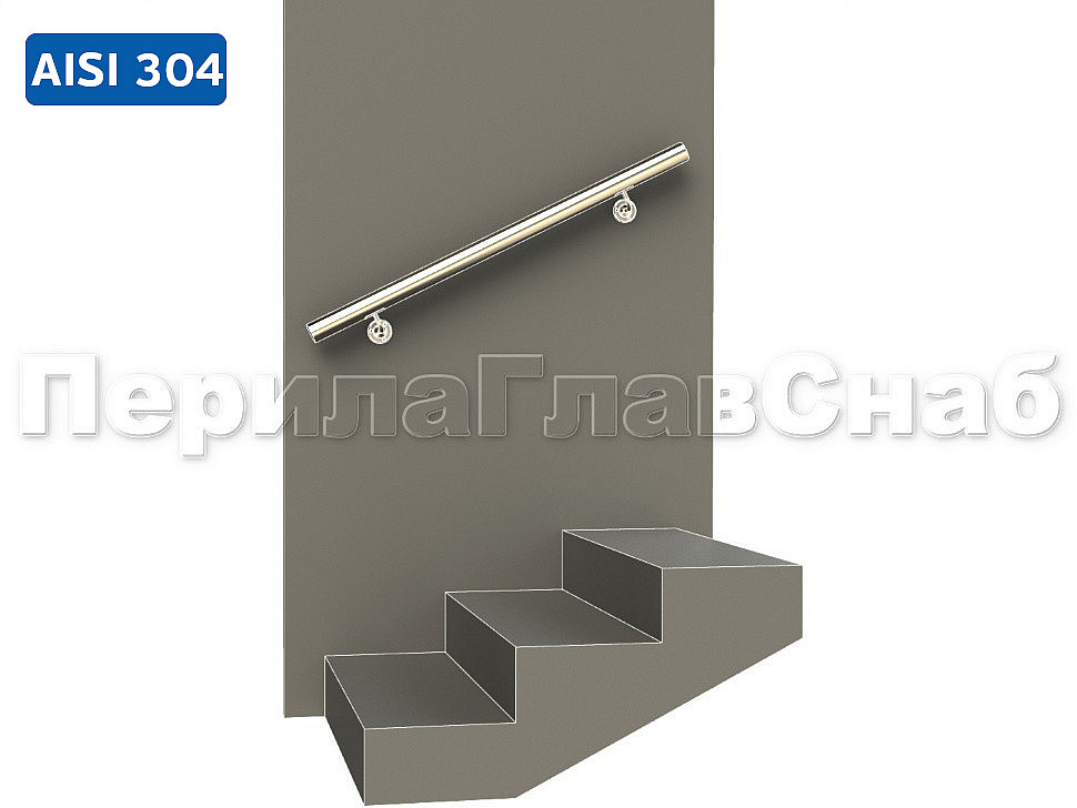 Готовый пристенный поручень с двумя держателями, длина 1000мм (aisi 304)