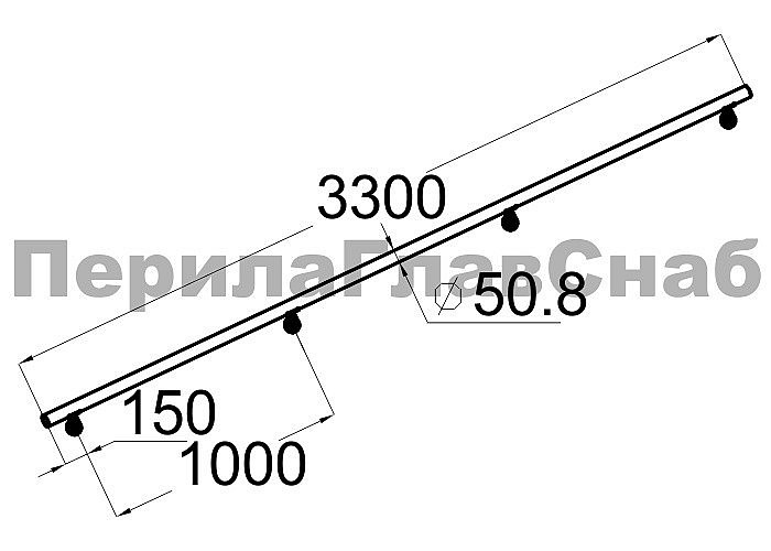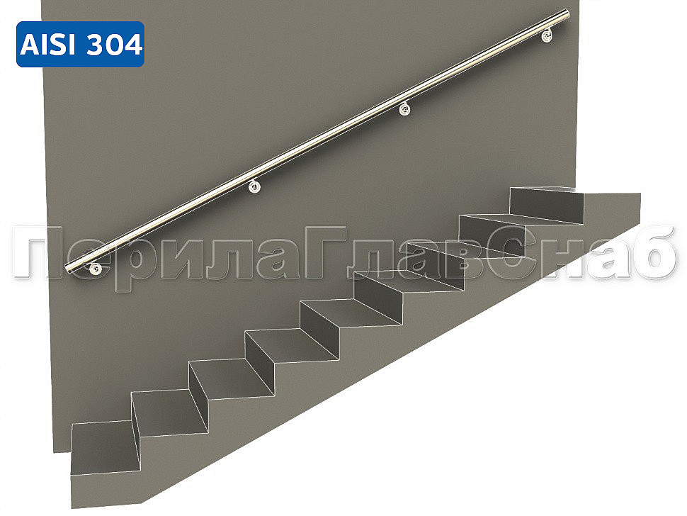 Готовый пристенный поручень с 4 держателями, длина 3300мм (aisi 304)