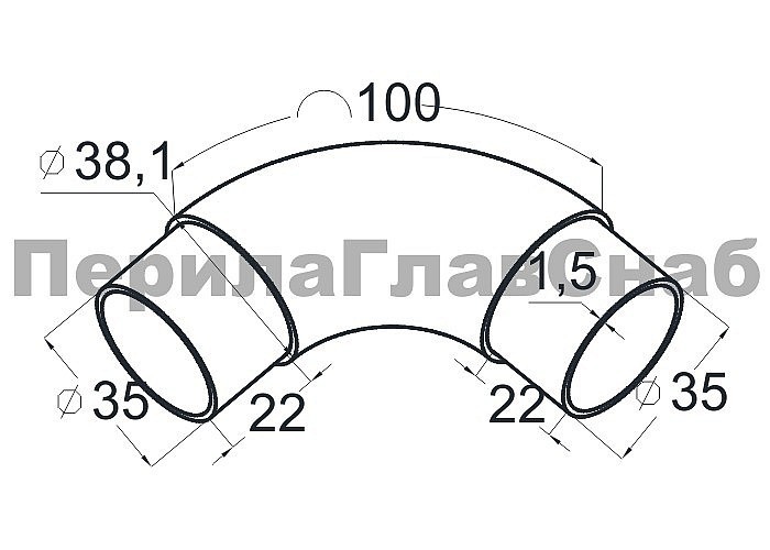 Ø38.1х1.5 мм, 90°длина дуги 110 мм