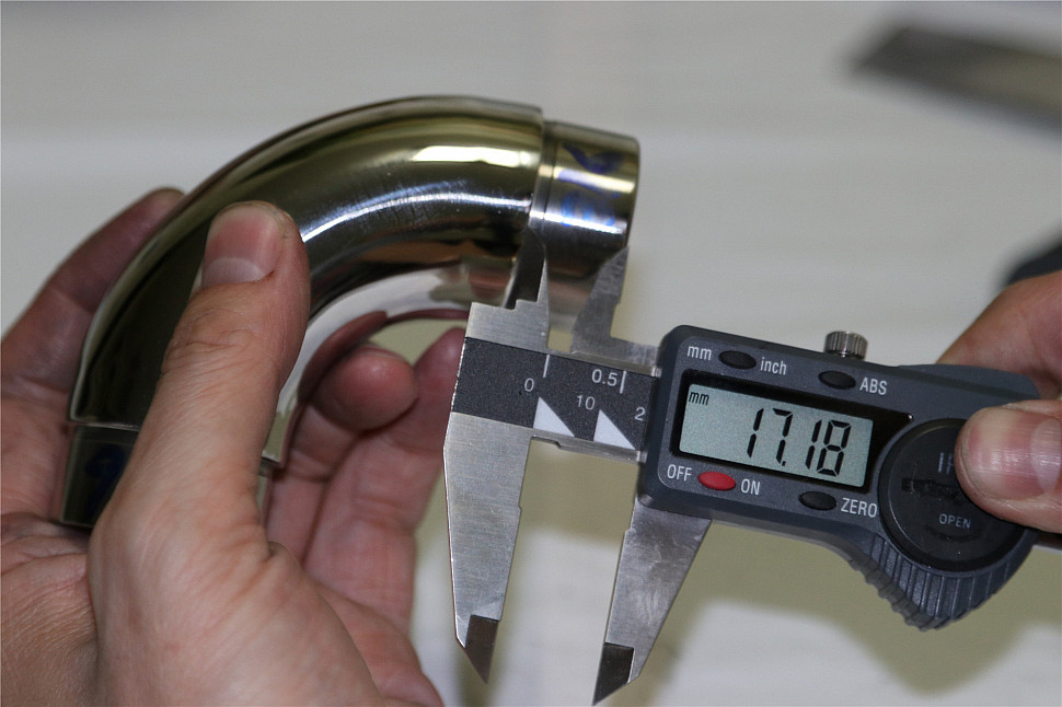 Отвод под поручень диаметром Ø38.1х110х1.5 мм, 90°. Деталь литая, полированная 600 Grit, с двумя установочными кольцами. Марка стали - AISI 316