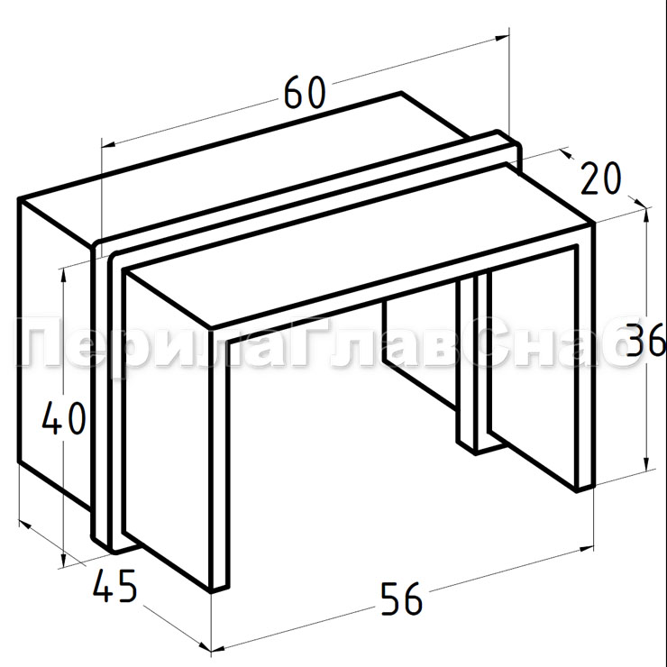 Соединитель для поручня прямоугольного, 40х60 с пазом, полированный. Марка стали - AISI 304.