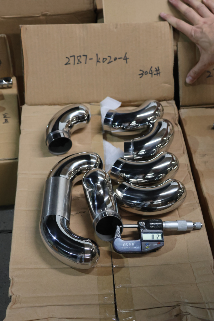 Отвод оконечный литой под трубу диаметром 50.8 мм, с круглой заглушкой. Деталь полированная 600Grit, литая, марка стали - AISI 304