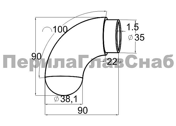 Отвод оконечный литой Ø38.1х100х1,45 мм, с круглой заглушкой, полированный 600 Grit, AISI 304, k384