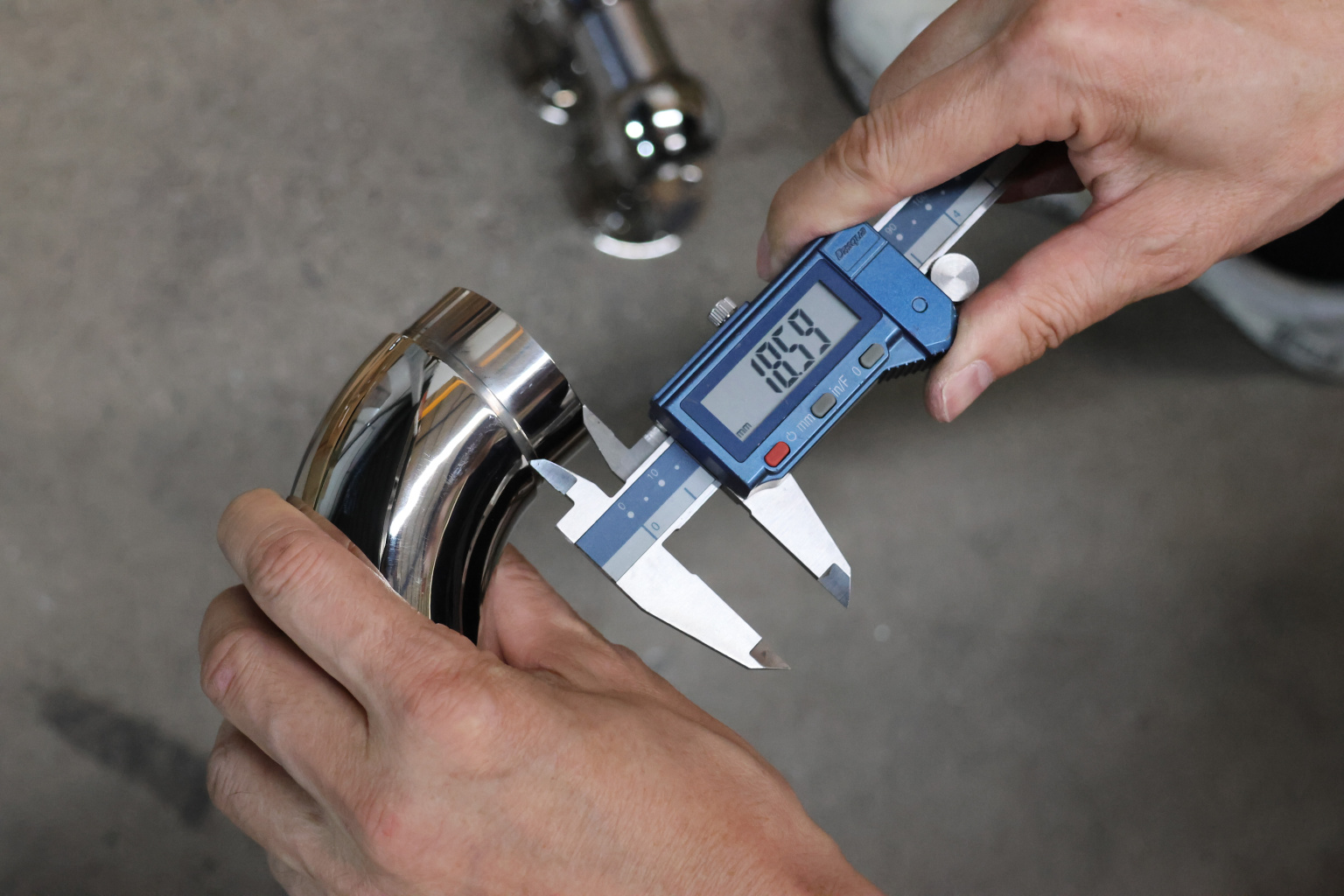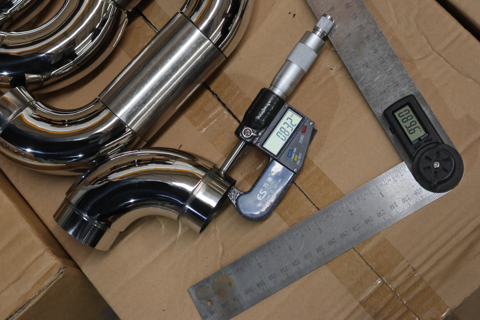 Как правило, в качестве поручня применяется труба из нержавеющей стали толщиной стенки 1.5 мм. Наша модель самосборного отвода сделана из высокопрочной стали со стенкой 1.45 мм с зазором для надежной установки на клей.
