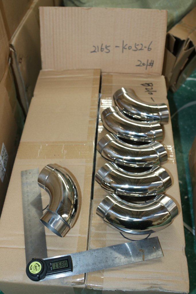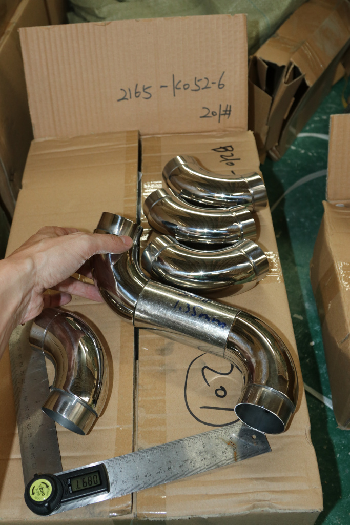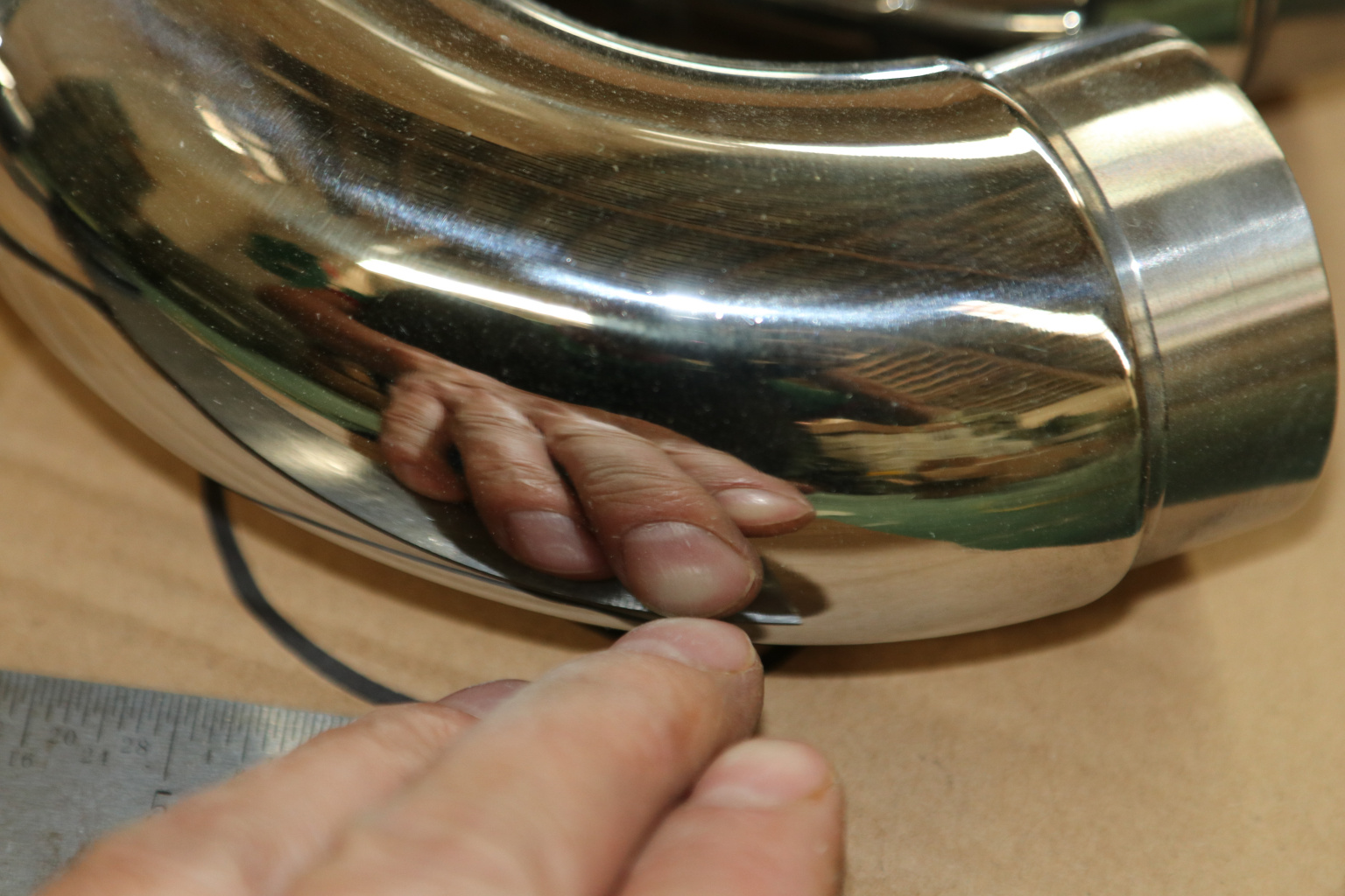 Отвод поручня с двумя установочными кольцами Ø50.8х125. Деталь полированная 600Grit. Марка стали - AISI 201