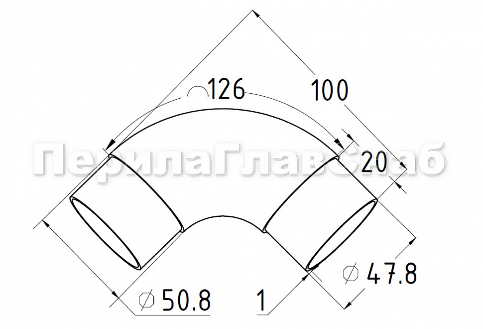 Отвод поручня с двумя установочными кольцами Ø50.8х125 AISI 201 k052-6
