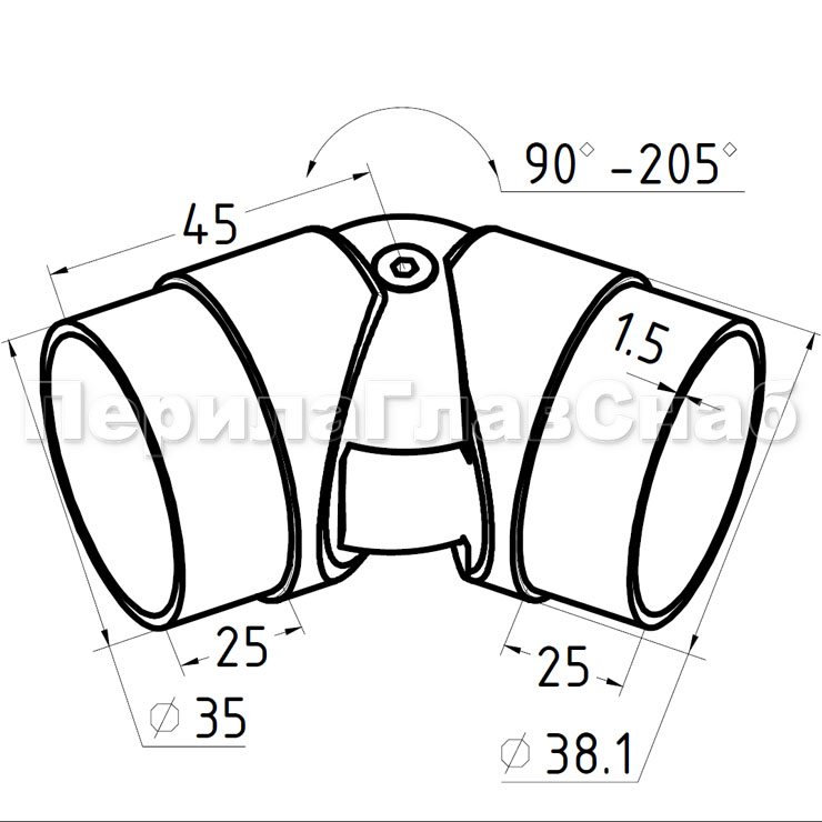 применяется во время монтажа самосборных ограждений для установки поворота нержавеющих перил в диапазоне от 85 до 215 градусов.