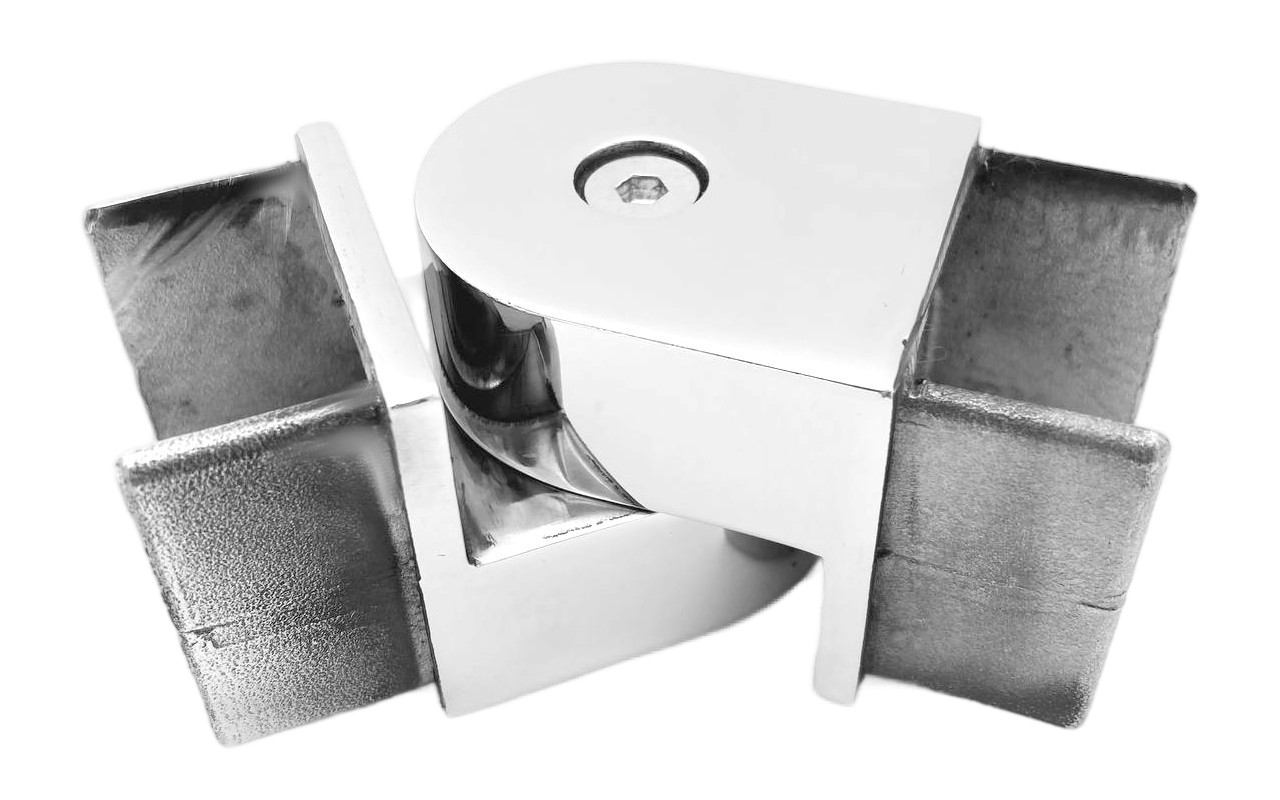 Отвод для поручня с пазом 40х40 мм, шарнирный, полированный. Марка стали - AISI 304