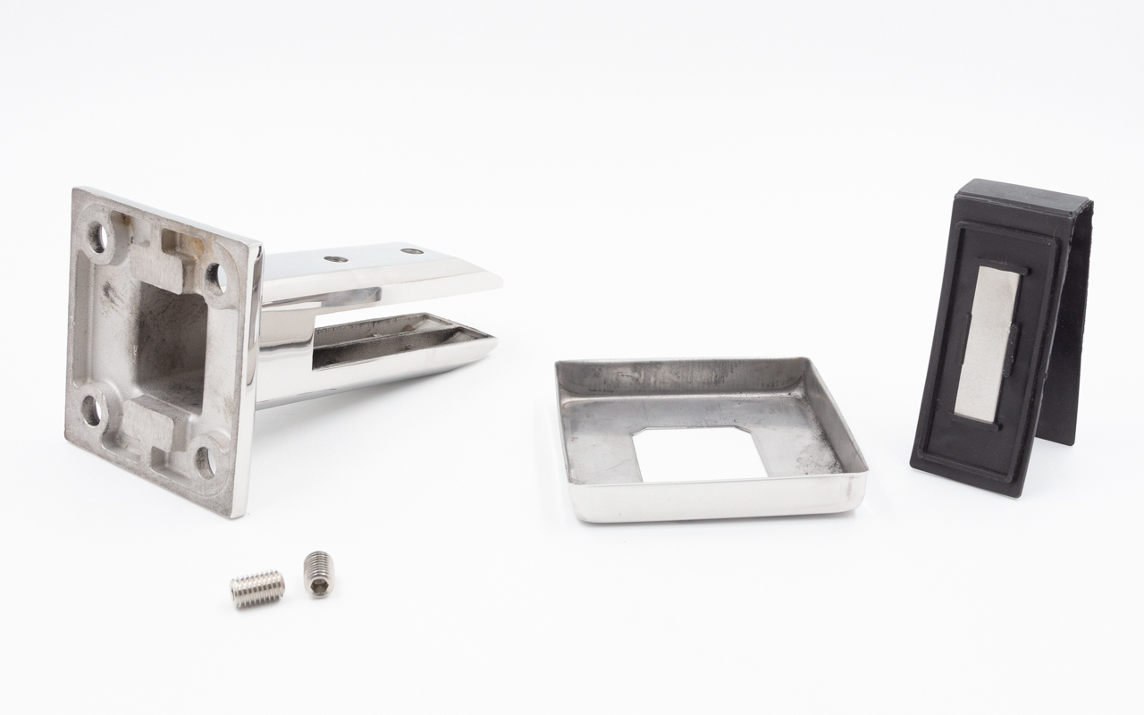 Стеклодержатель штампованный  под стекло 8 мм (4+4 мм), квадратный, под стойку Ø38.1 мм (40х24х48), полированный (AISI 304) k351 купить в Воронеже