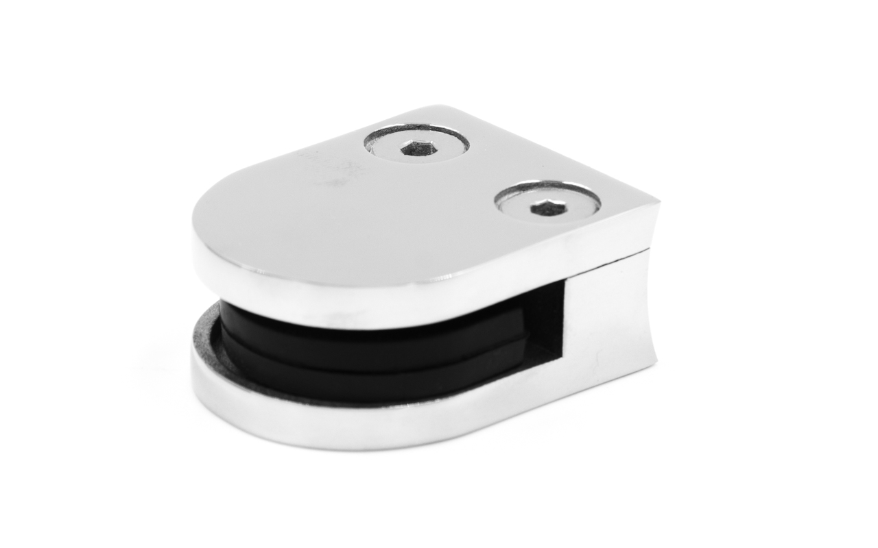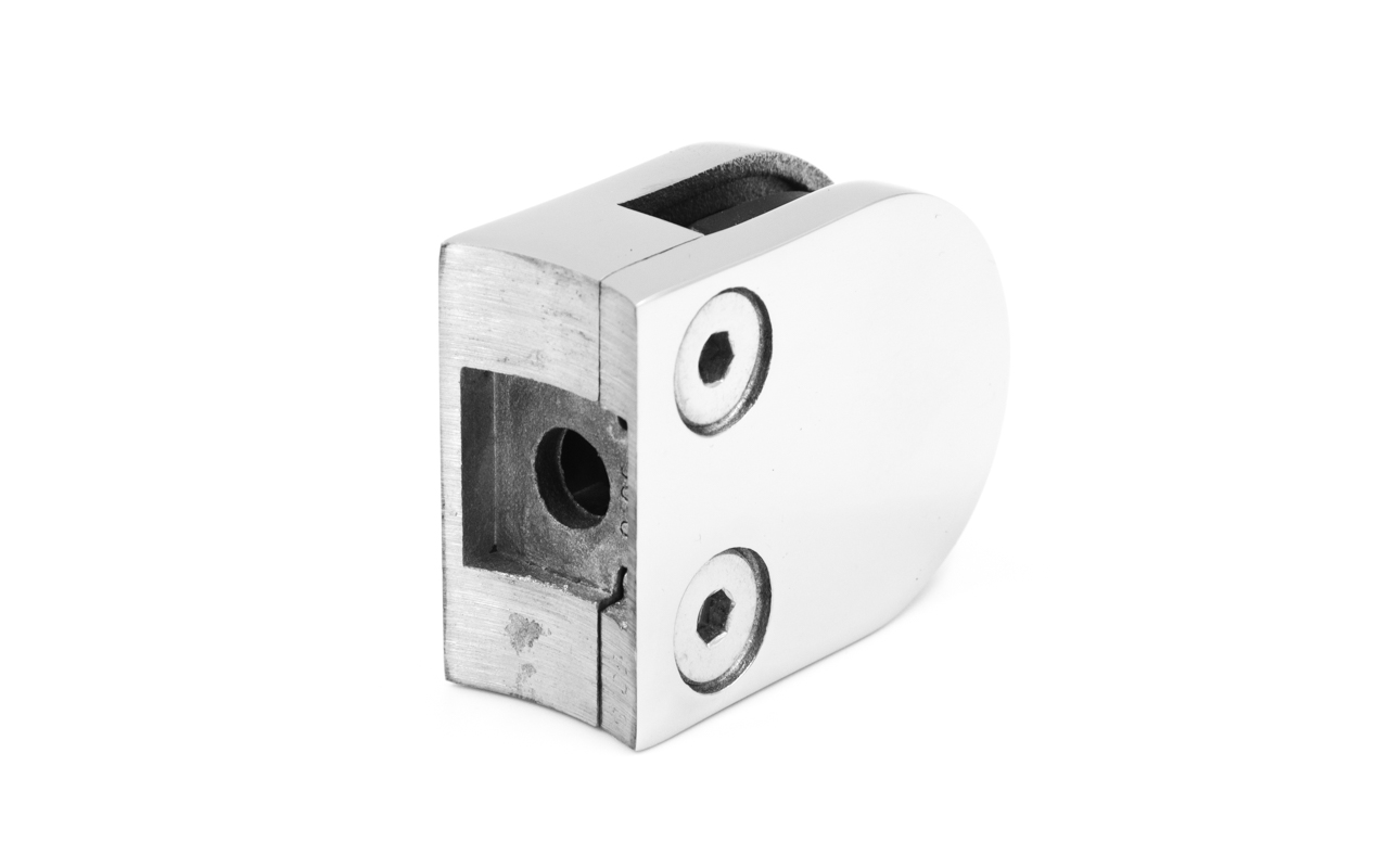 Стеклодержатель литой с вставками под стекло 8-10 мм, закругленный под Ø50.8 мм, 40х22х50, полированный, (AISI 304) k001-8