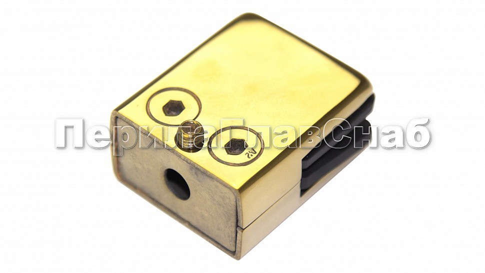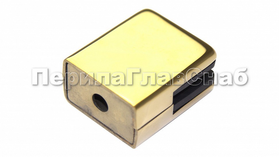 Стеклодержатель штампованный квадратный на плоскость для стекла 8 мм (4+4 мм). Деталь полированная, под золото. Марка стали - AISI 304