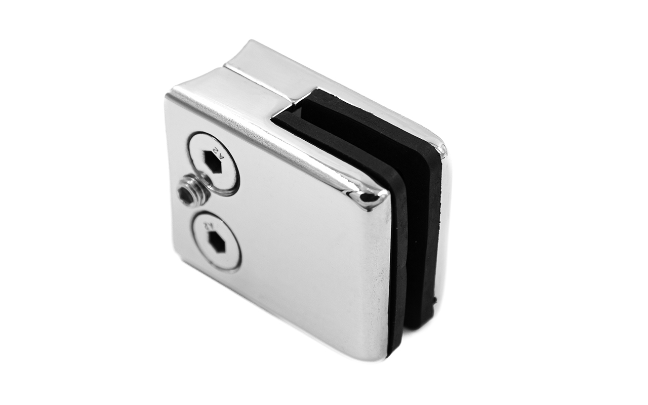Стеклодержатель штампованный под стекло 8 мм (4+4 мм), квадратный, под стойку Ø38.1 мм (40х24х48), полированный (AISI 304) k351