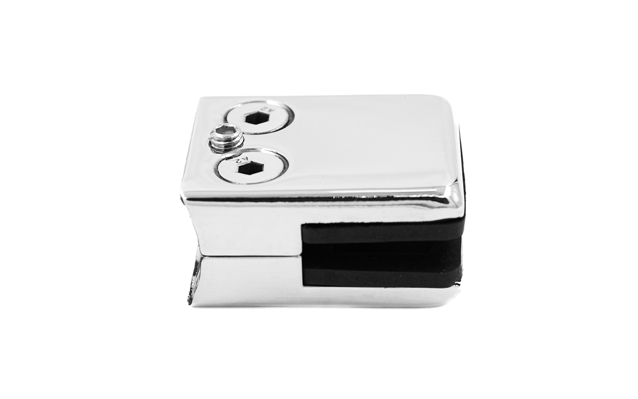 k351-10 Стеклодержатель штампованный под стекло 10 мм, квадратный под стойку Ø38.1 мм (45х24х43) полированный AISI 304
