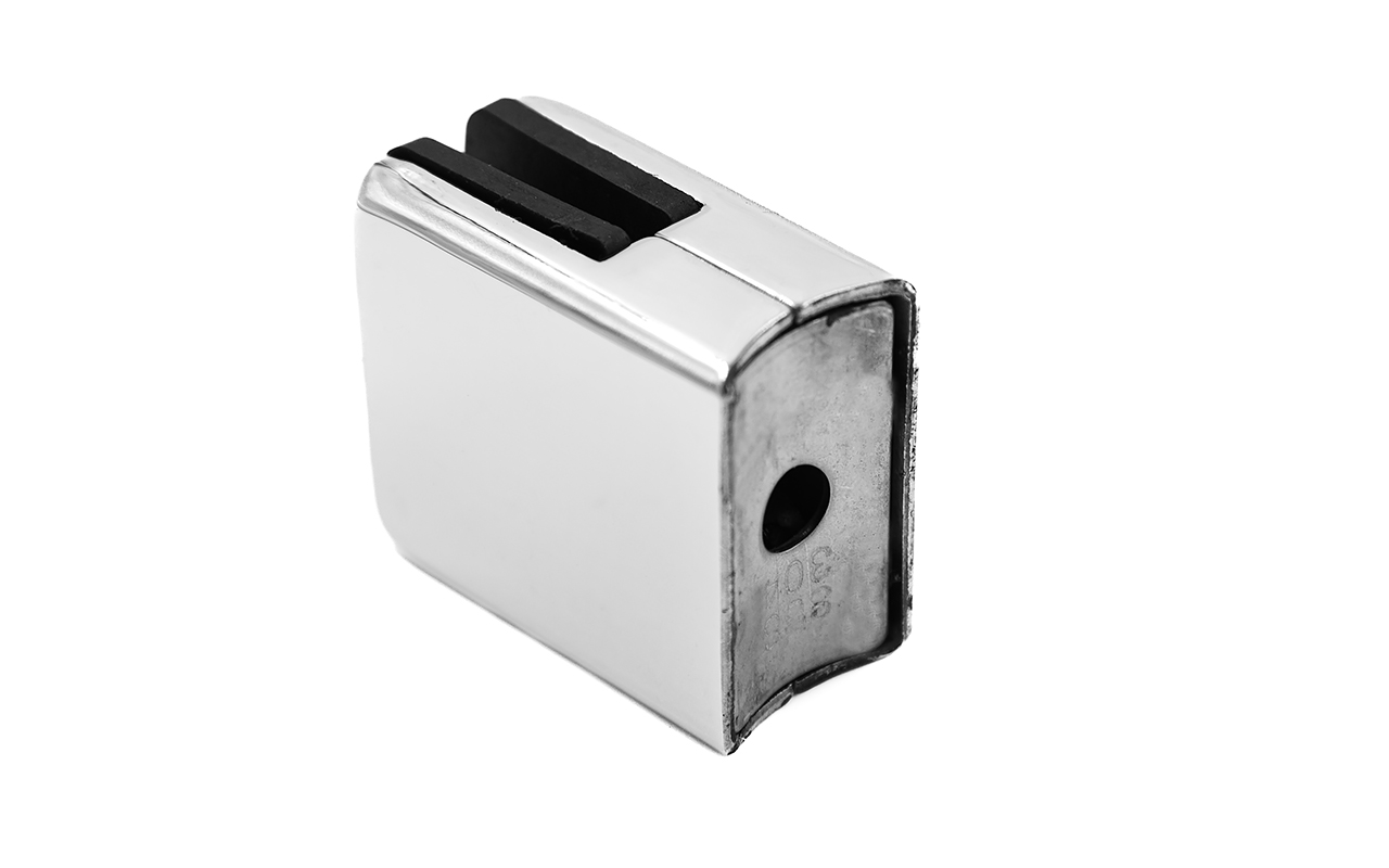 Стеклодержатель штампованный под стекло 8 мм (4+4 мм), под стойку Ø38.1 мм 40х24х55, полированный (AISI 304) k038 купить в Воронеже