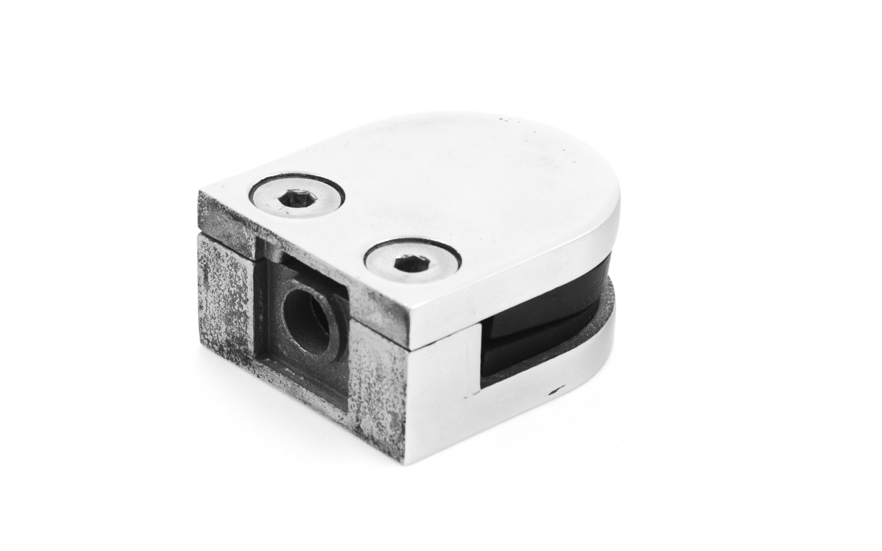 Стеклодержатель литой, под стекло 8 мм. 4+4 мм. на плоскость 40х22х48 полированный (AISI 304) k002-2