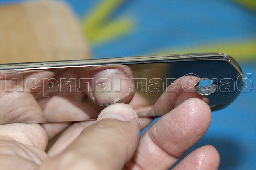 Центральным винтом стеклодержатель фиксируется на стойке, а стекла устанавливаются между стойками ограждения. Для  стекла толще 12 мм нужно докупать более длинные винты М8.
