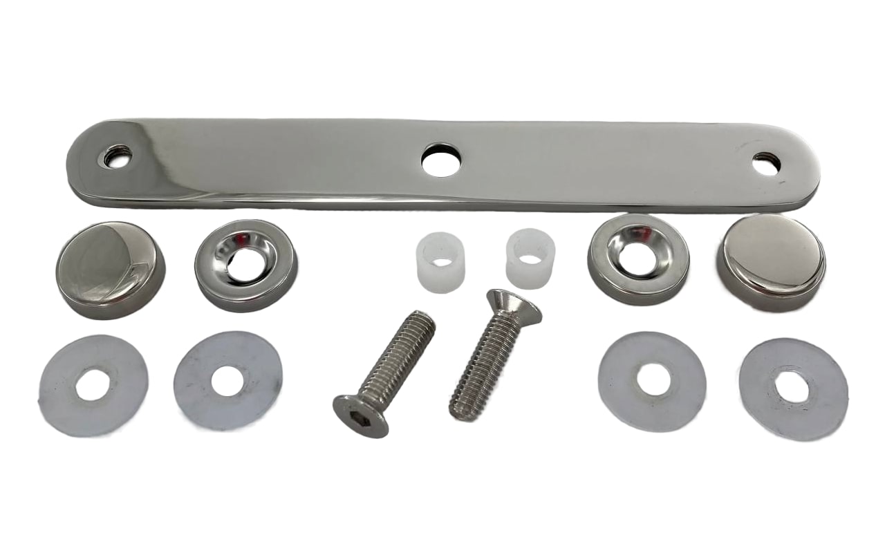 Основное отличие предлагаемой нами модели от аналогов — это увеличенная длина пластины. Те, кто уже работал со стеклом, знают, как трудно поймать малейшее отклонение линейных размеров стекла, особенно на наклонных лестничных маршах. При этом отклонение может возникнуть как в случае изменения длины или ширины стекла во время изготовления, так и при смещении оси просверленных в стекле отверстий под винты стеклодержателей. Избежать этого практически невозможно, так как двух абсолютно одинаковых стекло на свете не бывает.