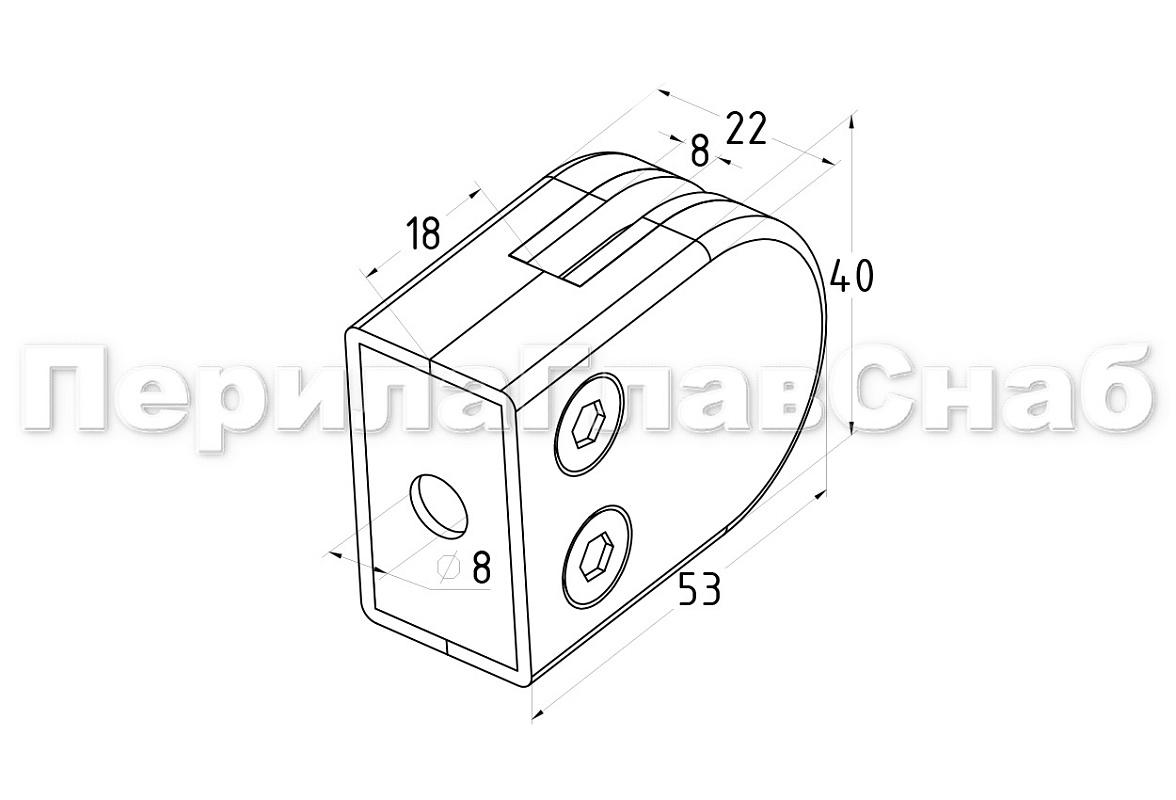 Стеклодержатель штампованный, под стекло 8 мм (4+4 мм), на плоскость 40х22х53 полированный (AISI 304) k039