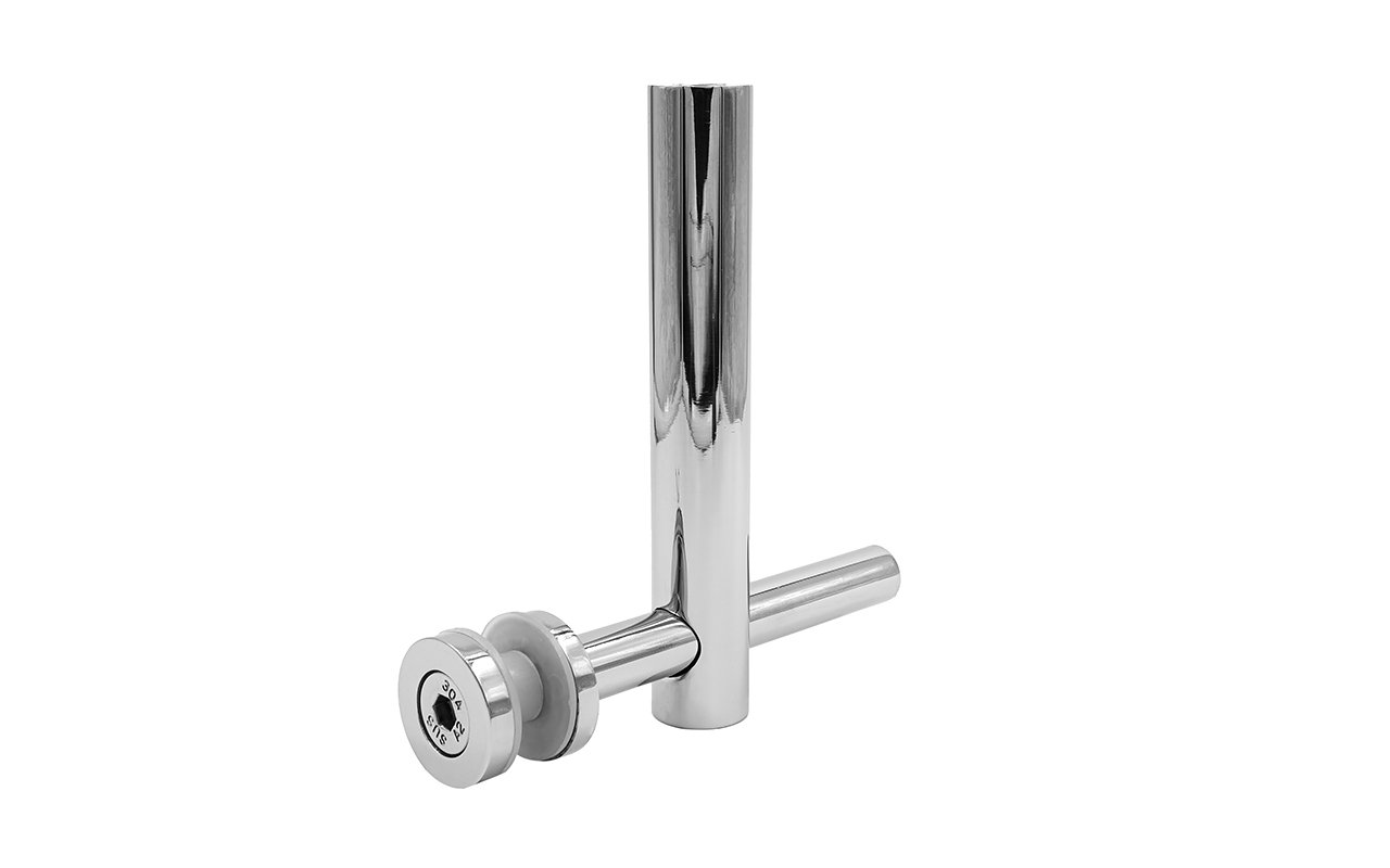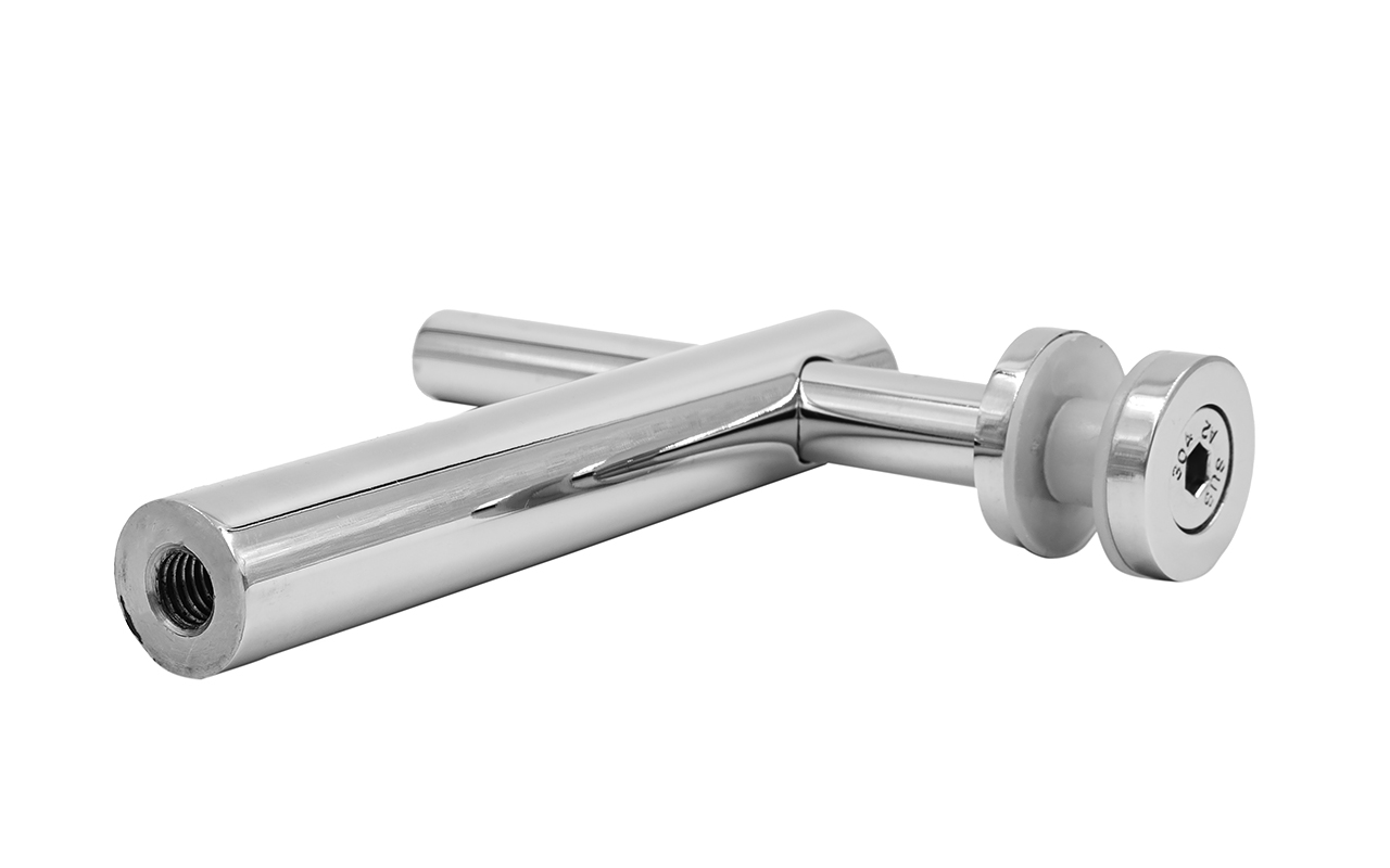 Для зажима более толстого стекла, достаточно заменить штатные винты стеклодержателя на увеличенные по длине аналоги с плоской головкой и резьбой М8. Стекло устанавливается между плоскими стойками, которые наиболее часто встречаются именно в крупных объектах — это торговые и развлекательные центры, офисные и бизнес-центры. Благодаря наличию регулировки, вынос стекла относительно оси стойки может доходить до 60 мм.