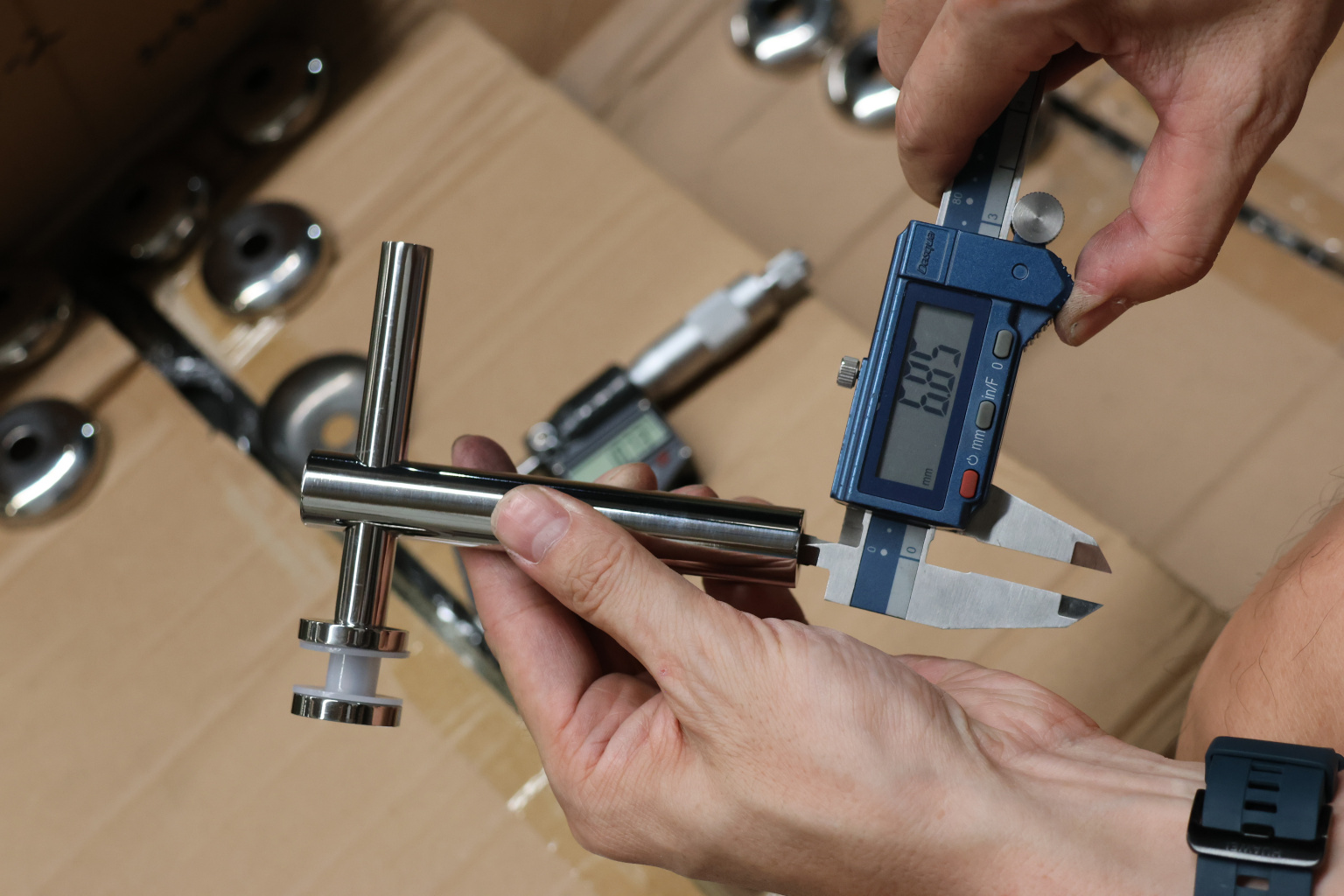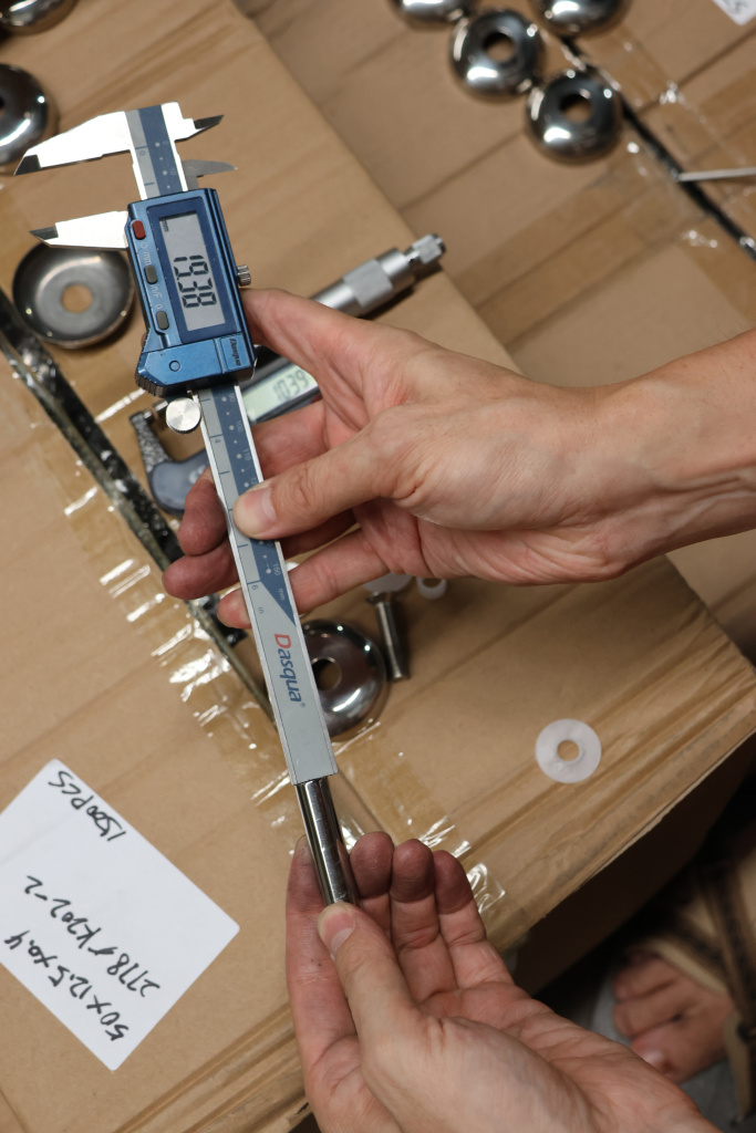 Наконечник палец на стойку Ø50.8х1.5 мм с регулируемым ложементом под поручень Ø50.8 мм, литой, полированный, нержавеющий AISI 304 k042 купить в Воронеже