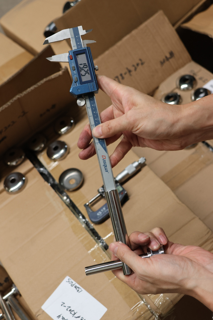 Стеклодержатель напольный Ø50х190 мм, литой, круглый, нержавеющая сталь AISI 304, полированная k276-3