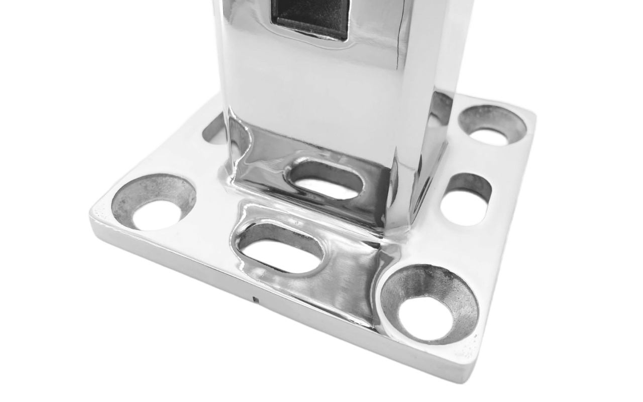 - позволяет создать ограждения без использования стоек, так как корпус нержавеющей детали монтируется прямо в пол.