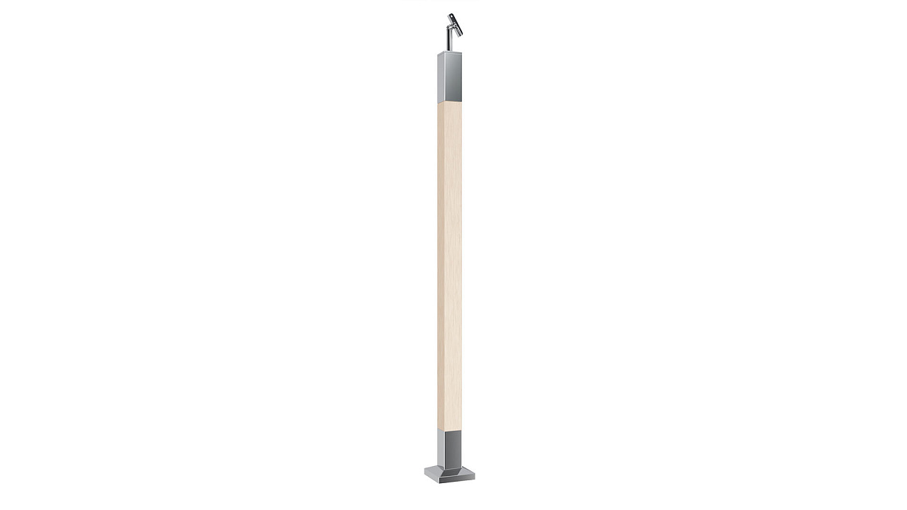 Готовая стойка 40х40х950 мм, деревянная, со вставками из нержавеющей стали 2х100 мм с 2 зажимными стеклодержателями k740-4-L купить в Воронеже