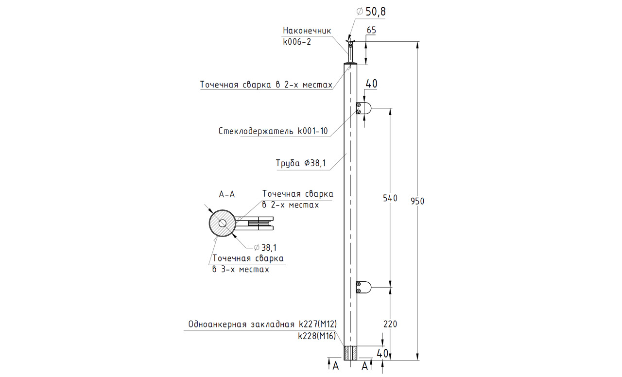 Готовые стойки – это экономия вашего времени и денег. Приобретая готовую стойку Вы можете собрать ограждение сами, не привлекая монтажную бригаду и экономя денежные средства на монтаже. Стойка легко монтируется к торцу несущей конструкции с отверстиями под анкер-болт М8 ( М-3129, М-3843, М-3838).. Стекло ( С-8003, С-8023, С-8006, С-8047, С-8049) крепится в стеклодержателе за счет отсоединяющейся одной половины стеклодержателя при помощи шестигранника ( k931, k932). Поручень из нержавеющей стали так же легко закрепить при помощи сверла по нержавеющей стали ( k961-03, k961-03.5, k961р-03.5, k961р-03) и самореза ( М-3850, М-3847, М-3215). Либо при помощи заклепки ( М-3214) и винта М6 ( М-3973), для крепления при помощи заклепок необходимо растачивать отверстие в ложементе. Если вы используете пластиковый ( k893, k897, k892, k891, k894, k895, k899) или деревянный поручень, то его можно закрепить при помощи саморезов ( М-3217).