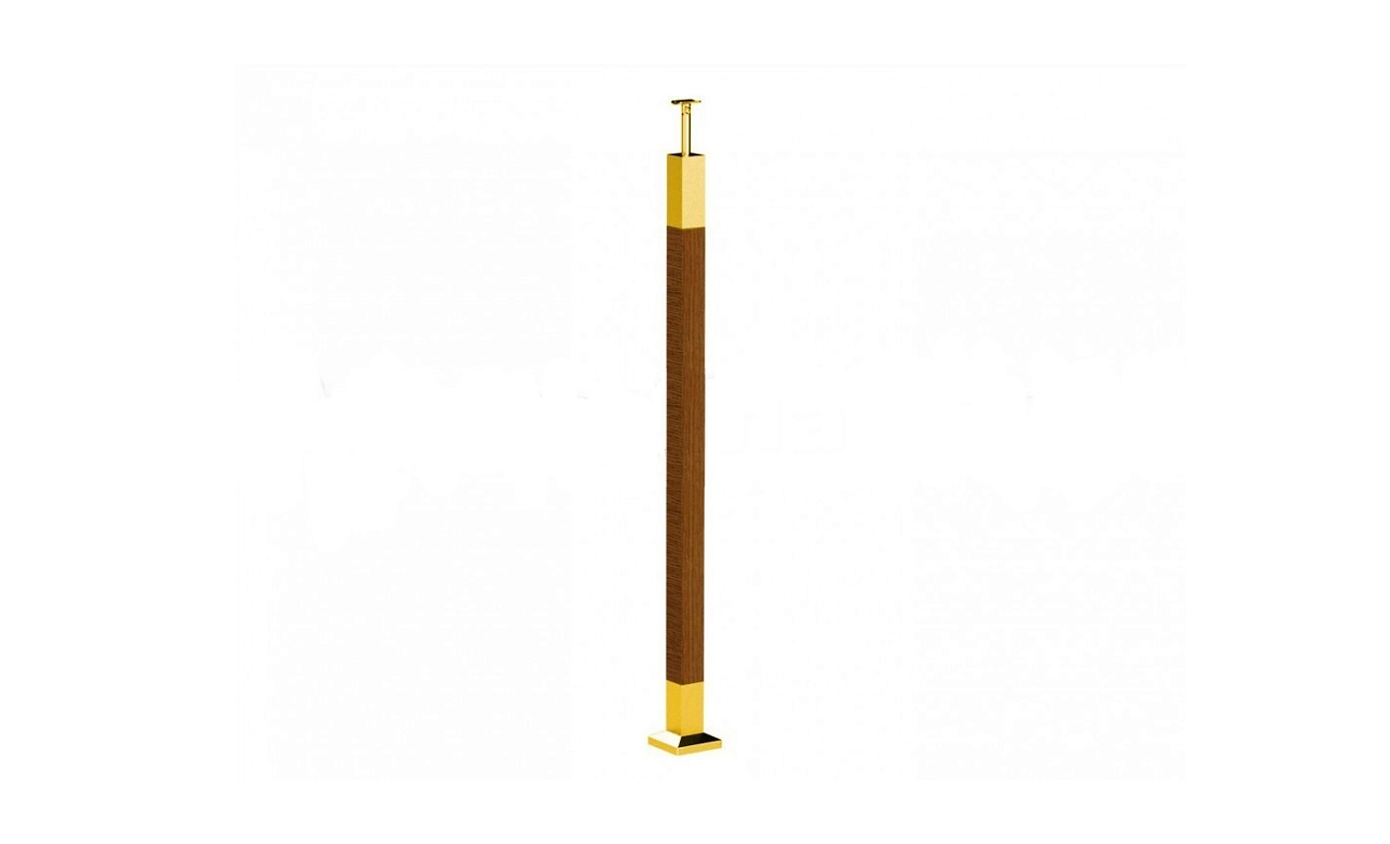 Готовая стойка Ø38,1х950 мм деревянная, со вставками из нержавеющей стали под золото 2х100 мм базовая k741-G купить в Воронеже