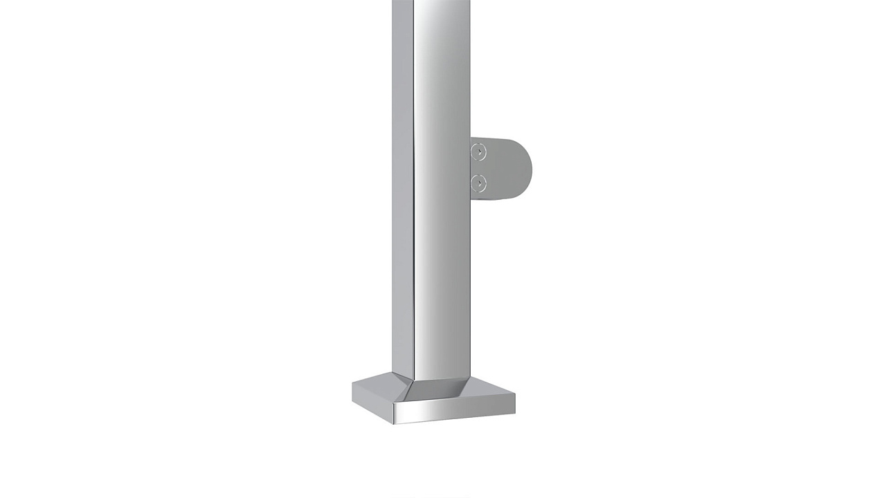 Стойка квадратная 40х40: 2 литых зажимн. стеклодержателя, шлифованная, высота 950 мм, марка стали- AISI 304