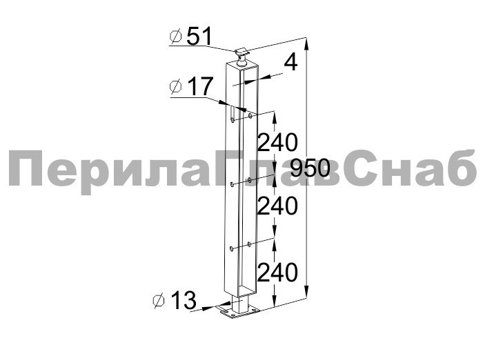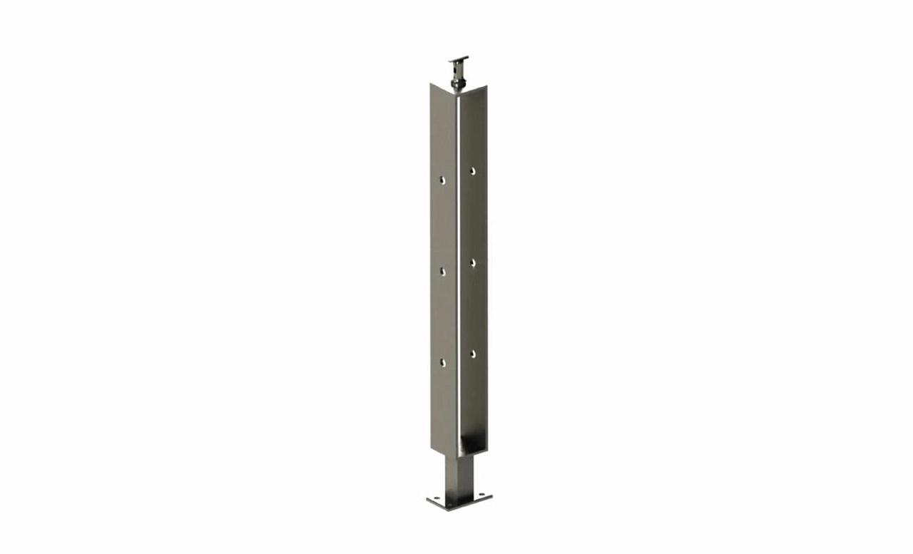 Стойка квадратная 40х40: 4 литых стеклодержателя, полированная, высота 950 мм (AISI 304) k746 купить в Воронеже