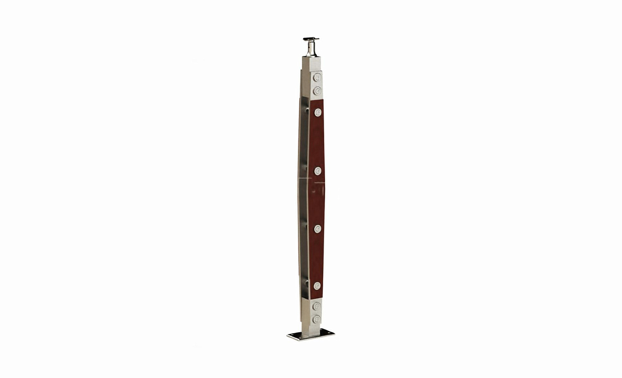 Готовая стойка 40х40х950 мм, деревянная, со вставками из нержавеющей стали 2х100 мм с 2 зажимными стеклодержателями k740-4-R купить в Воронеже