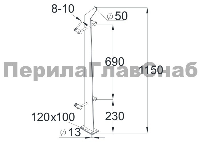 Стойка эксклюзивная с двумя спайдерными стеклодержателями, крепление в пол, нерегулируемый ложемент (aisi 304)