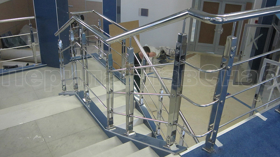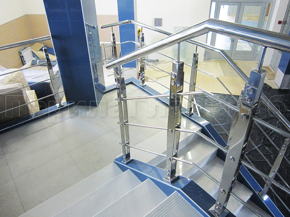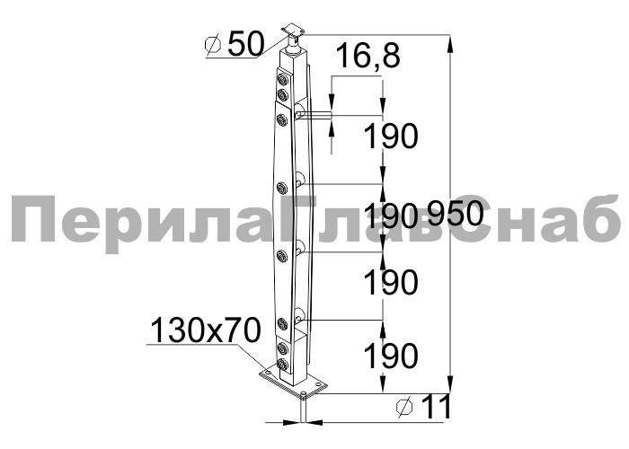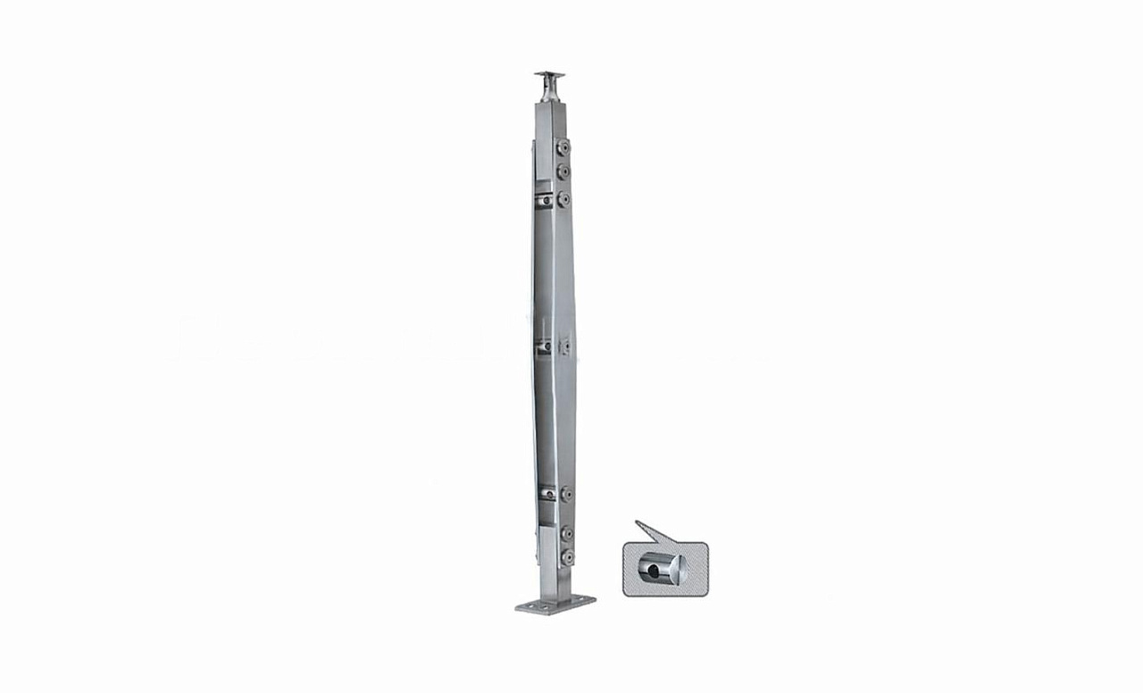 Стойка квадратная 40х40: 4 литых стеклодержателя, полированная, высота 950 мм (AISI 304) k746 купить в Воронеже