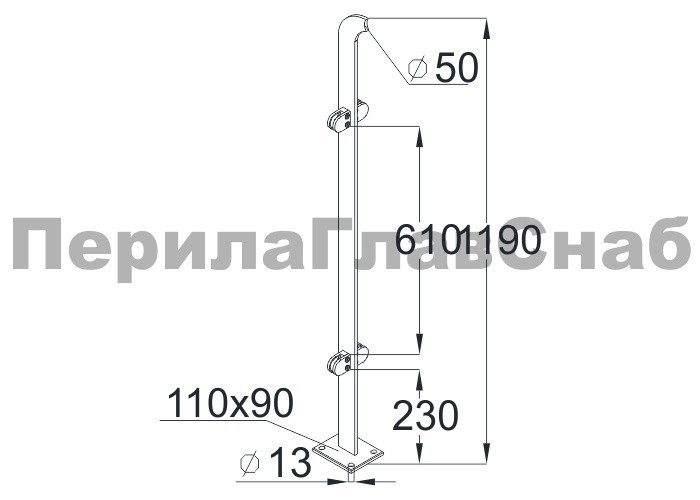 Стойка круглая Ø38.1: 2 литых зажимных стеклодержателя, под стекло 8-10 мм, полированная, высота 950 мм (AISI 304) k722-L купить в Воронеже