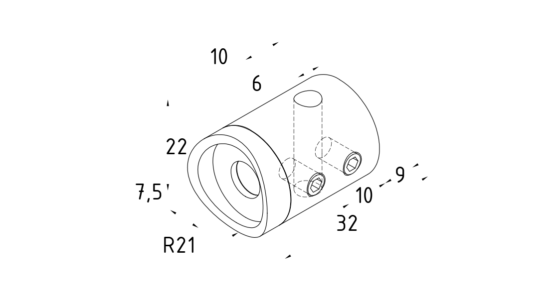 Держатель тросика Ø5 мм, 22х30 мм, под Ø42.4 мм, полированный. Марка стали -  AISI 304