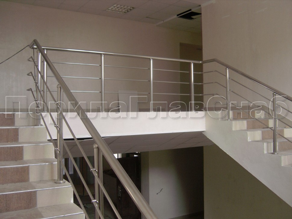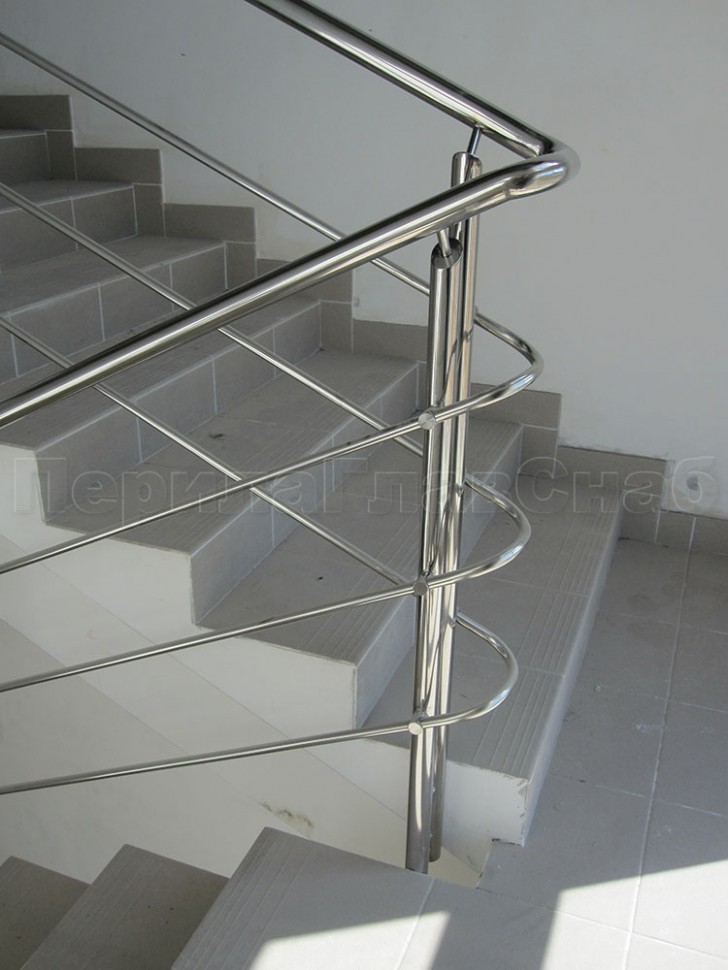 Четыре ригеля на сварке, круглый поручень и квадратные стойки