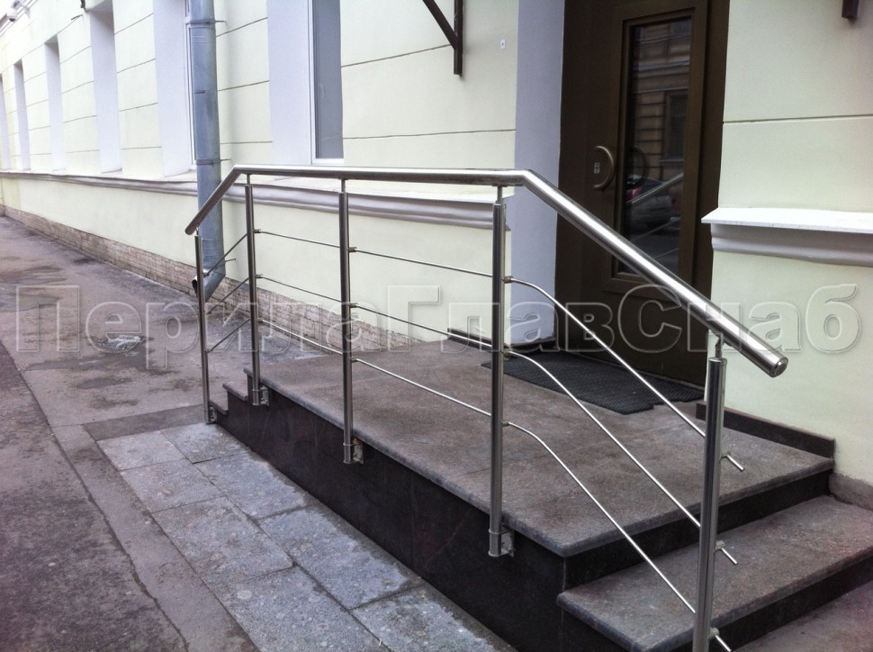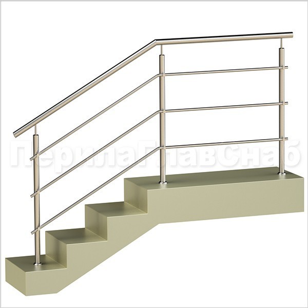 Три ригеля на держателях, круглый поручень и круглые стойки для крыльца