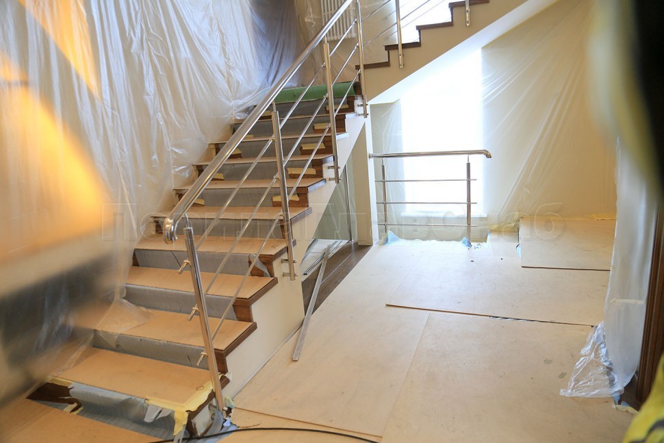 Ограждение для лестницы из нержавейки с зажимными стеклодержателями для крыльца
